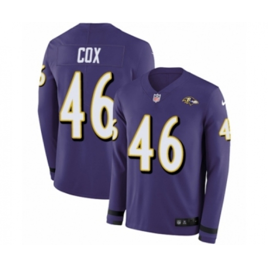 Men's Nike Baltimore Ravens #46 Morgan Cox Limited Purple Therma Long Sleeve NFL Jersey