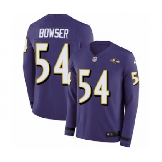 >Men's Nike Baltimore Ravens #54 Tyus Bowser Limited Purple Therma Long Sleeve NFL Jersey
