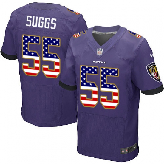 Home>NFL>Baltimore Ravens>Terrell Suggs>Men's Nike Baltimore Ravens #55 Terrell Suggs Elite Purple Home USA Flag Fashion NFL Jersey