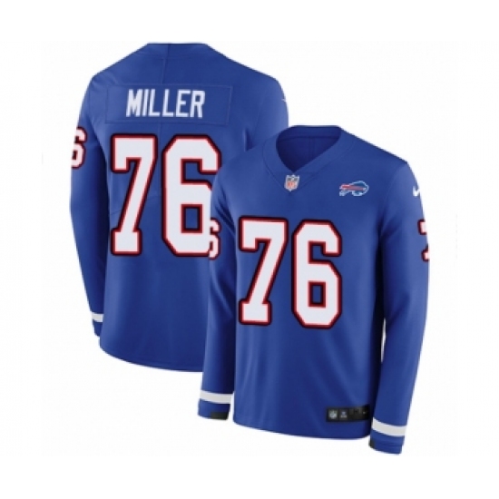 >Men's Nike Buffalo Bills #76 John Miller Limited Royal Blue Therma Long Sleeve NFL Jersey