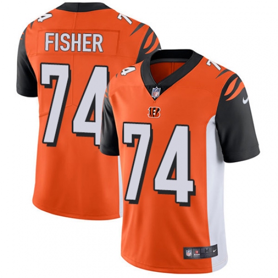 Home>NFL>Cincinnati Bengals>Jake Fisher>Men's Nike Cincinnati Bengals #74 Jake Fisher Vapor Untouchable Limited Orange Alternate NFL Jersey