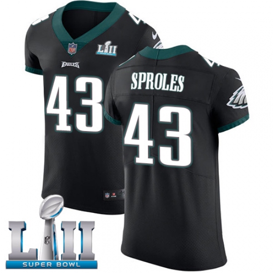 Men's Nike Philadelphia Eagles #43 Darren Sproles Black Vapor Untouchable Elite Player Super Bowl LII NFL Jersey