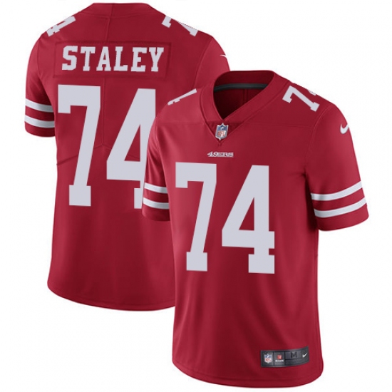 Men's Nike San Francisco 49ers #74 Joe Staley Red Team Color Vapor Untouchable Limited Player NFL Jersey
