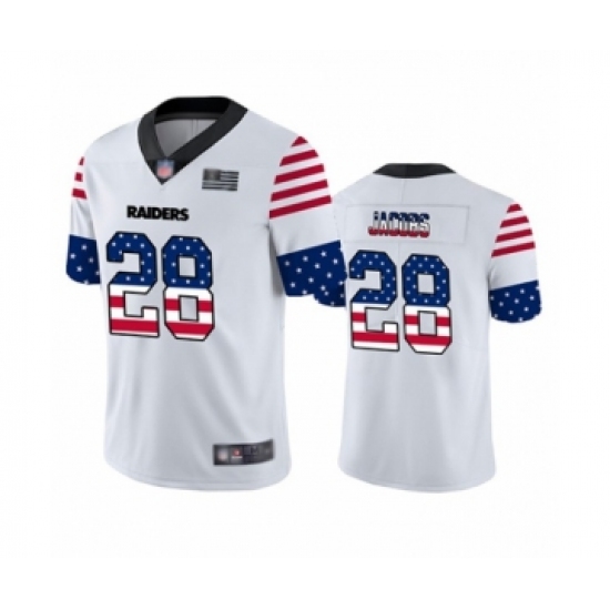 Men's Oakland Raiders #28 Josh Jacobs White Independence Day Limited Football Jersey