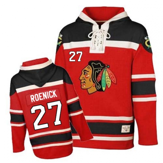 Men's Old Time Hockey Chicago Blackhawks #27 Jeremy Roenick Authentic Red Sawyer Hooded Sweatshirt NHL Jersey