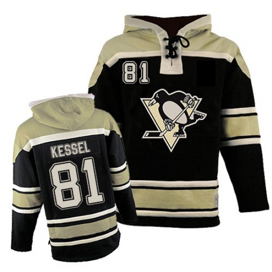 Men's Old Time Hockey Pittsburgh Penguins #81 Phil Kessel Premier Black Sawyer Hooded Sweatshirt NHL Jersey