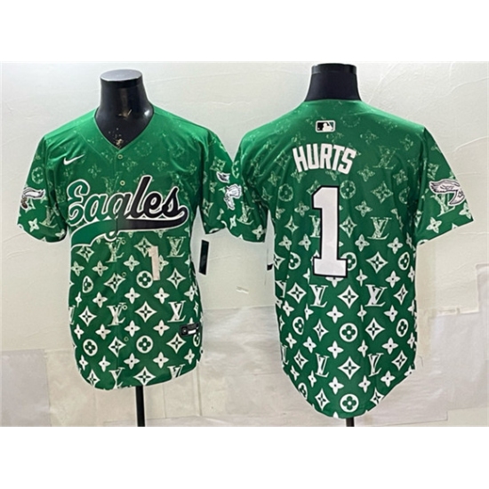 >Men's Philadelphia Eagles #1 Jalen Hurts Green With Limited Stitched Baseball Jersey