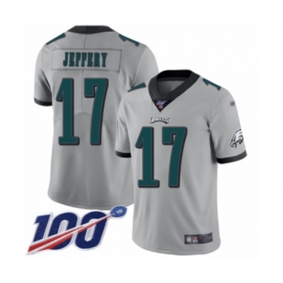 Men's Philadelphia Eagles #17 Alshon Jeffery Limited Silver Inverted Legend 100th Season Football Jersey