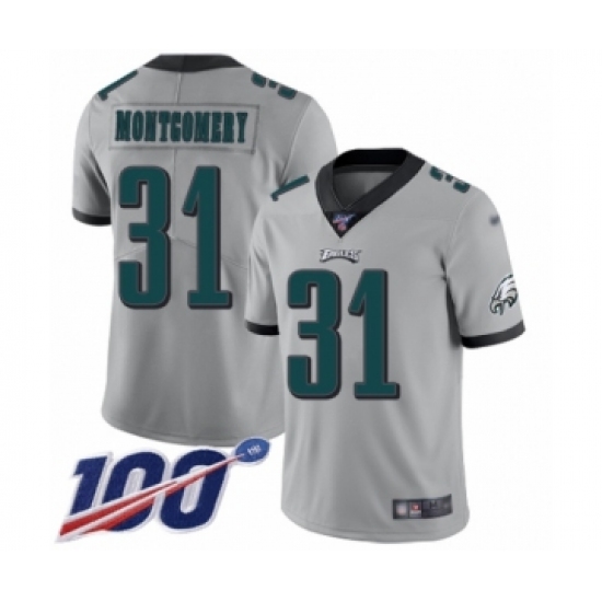 Men's Philadelphia Eagles #31 Wilbert Montgomery Limited Silver Inverted Legend 100th Season Football Jersey