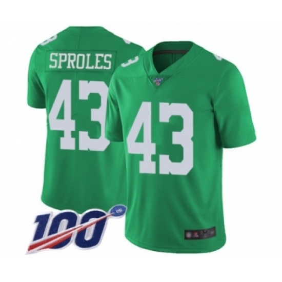 Men's Philadelphia Eagles #43 Darren Sproles Limited Green Rush Vapor Untouchable 100th Season Football Jersey
