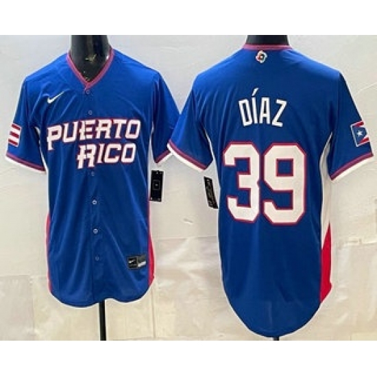 Men's Puerto Rico #39 Edwin Diaz Blue 2026 World Baseball Classic Cool Base Jersey