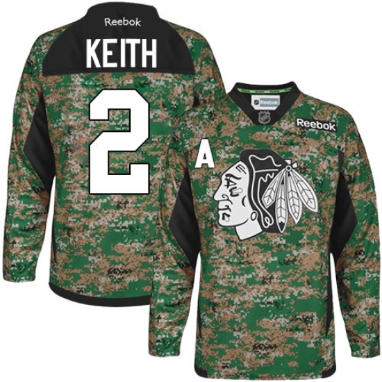 Men's Reebok Chicago Blackhawks #2 Duncan Keith Authentic Camo Veterans Day Practice NHL Jersey