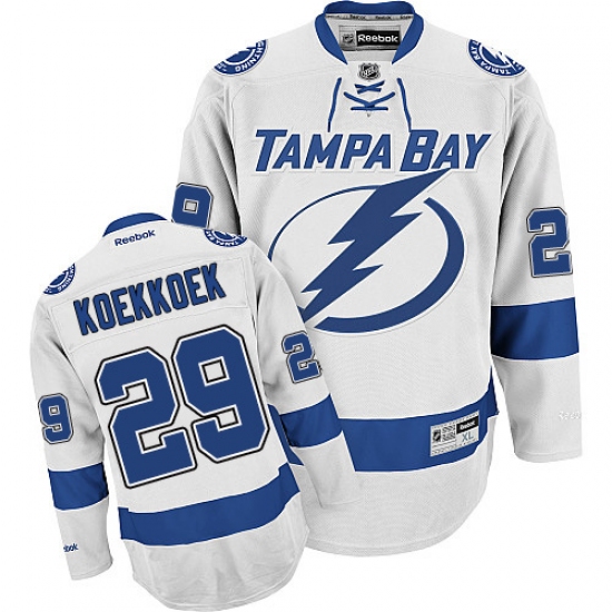 Home>NHL>Tampa Bay Lightning>Slater Koekkoek>Men's Reebok Tampa Bay Lightning #29 Slater Koekkoek Authentic White Away NHL Jersey
