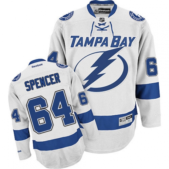 Home>NHL>Tampa Bay Lightning>Matthew Spencer>Men's Reebok Tampa Bay Lightning #64 Matthew Spencer Authentic White Away NHL Jersey