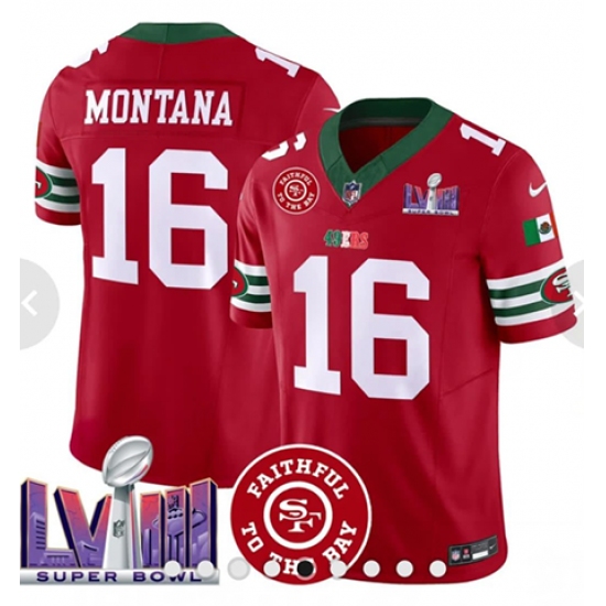 Men's San Francisco 49ers #16 Joe Montana Red 2023 F U S E And Faithful To The Bay Stitched Football Jersey