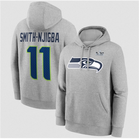 Men's Seattle Seahawks #11 Jaxon Smith-Njigba Heather Gray 2025 Super Bowl LX Patch Name & Number Hoodie