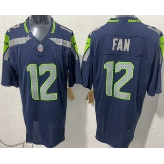 Men's Seattle Seahawks #12 Fan Navy 2025 F.U.S.E. Super Bowl LX And 50th Season Vapor Limited Football Stitched Jersey