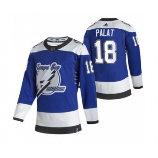 Men's Tampa Bay Lightning #18 Ondrej Palat Blue 2020-21 Reverse Retro Alternate Hockey Jersey