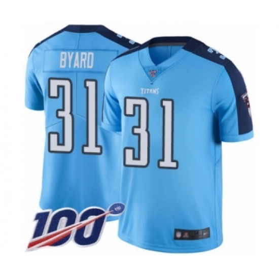 >Men's Tennessee Titans #31 Kevin Byard Limited Light Blue Rush Vapor Untouchable 100th Season Football Jersey
