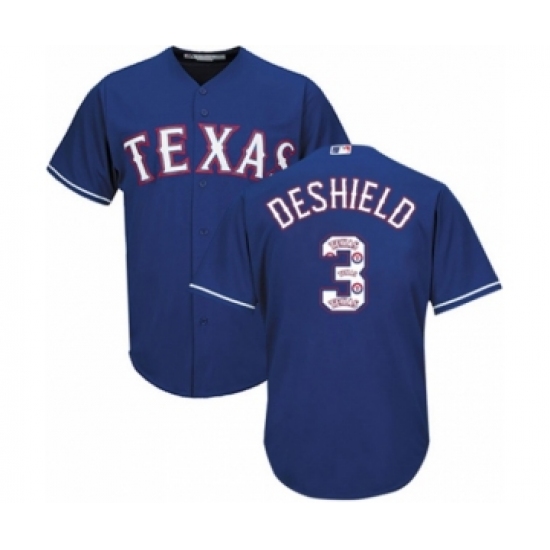 >Men's Texas Rangers #3 Delino DeShields Jr. Authentic Royal Blue Team Logo Fashion Cool Base Baseball Player Jersey