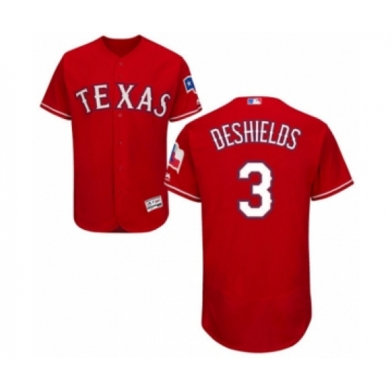 >Men's Texas Rangers #3 Delino DeShields Jr. Red Alternate Flex Base Authentic Collection Baseball Player Jersey