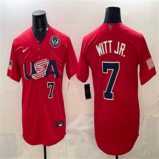 Men's USA Baseball #7 Bobby Witt Jr. Red 2026 World Baseball Classic United States 250th Anniversary Stadium Stitched Jersey