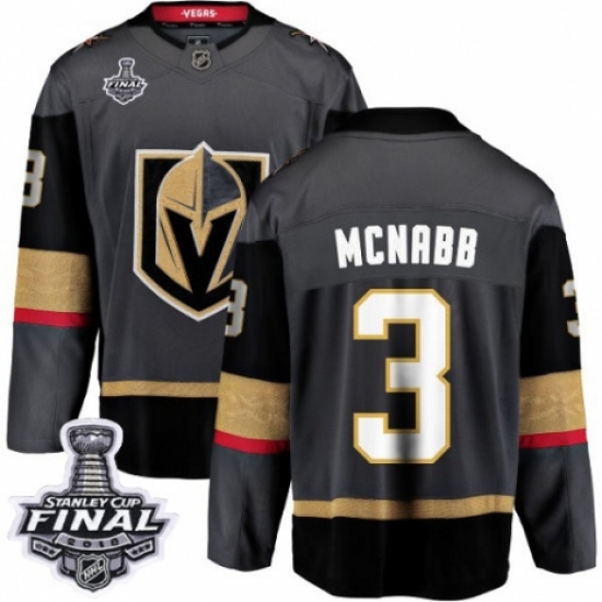 Men's Vegas Golden Knights #3 Brayden McNabb Authentic Black Home Fanatics Branded Breakaway 2018 Stanley Cup Final NHL Jersey