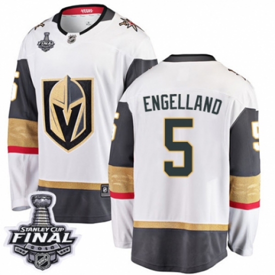 Men's Vegas Golden Knights #5 Deryk Engelland Authentic White Away Fanatics Branded Breakaway 2018 Stanley Cup Final NHL Jersey