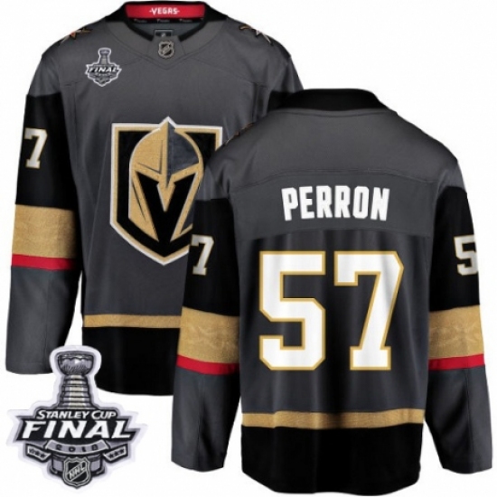>Men's Vegas Golden Knights #57 David Perron Authentic Black Home Fanatics Branded Breakaway 2018 Stanley Cup Final NHL Jersey