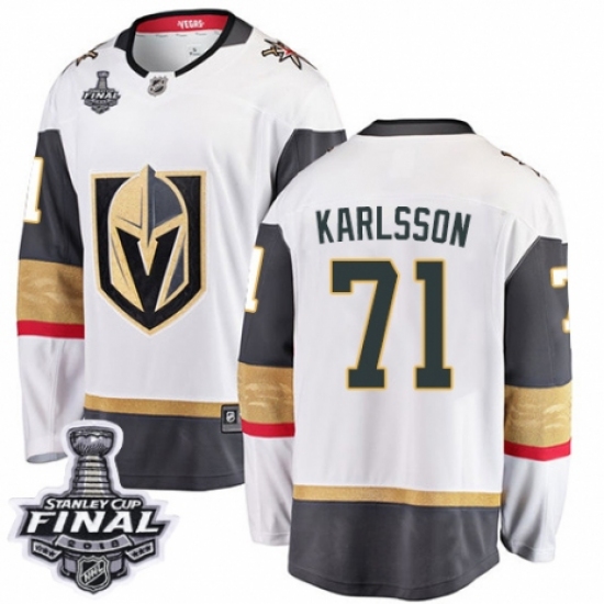Men's Vegas Golden Knights #71 William Karlsson Authentic White Away Fanatics Branded Breakaway 2018 Stanley Cup Final NHL Jersey