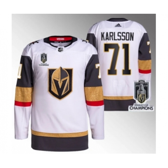 Men's Vegas Golden Knights #71 William Karlsson White 2023 Stanley Cup Champions Stitched Jersey