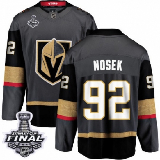 Men's Vegas Golden Knights #92 Tomas Nosek Authentic Black Home Fanatics Branded Breakaway 2018 Stanley Cup Final NHL Jersey