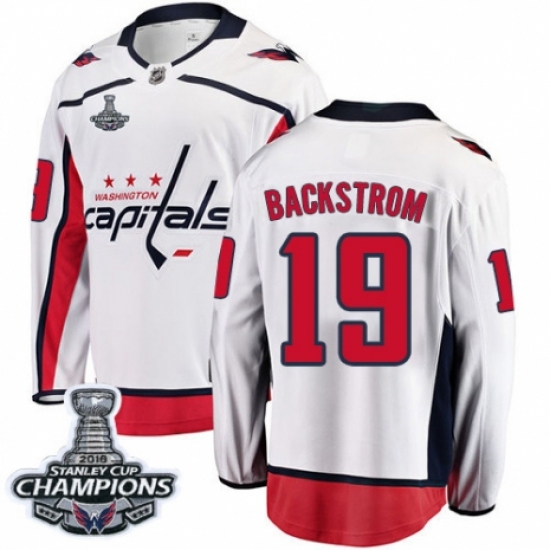Men's Washington Capitals #19 Nicklas Backstrom Fanatics Branded White Away Breakaway 2018 Stanley Cup Final Champions NHL Jersey