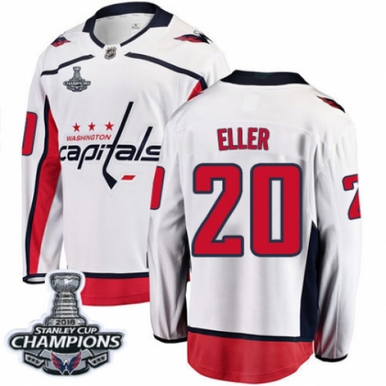 Men's Washington Capitals #20 Lars Eller Fanatics Branded White Away Breakaway 2018 Stanley Cup Final Champions NHL Jersey