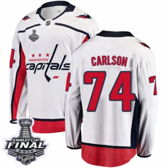 Men's Washington Capitals #74 John Carlson Fanatics Branded White Away Breakaway 2018 Stanley Cup Final NHL Jersey