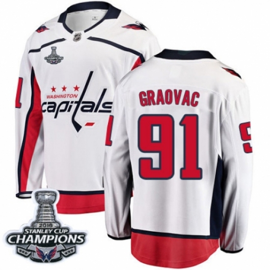 Men's Washington Capitals #91 Tyler Graovac Fanatics Branded White Away Breakaway 2018 Stanley Cup Final Champions NHL Jersey