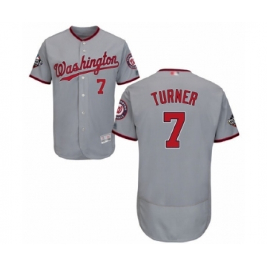 Men's Washington Nationals #7 Trea Turner Grey Road Flex Base Authentic Collection 2019 World Series Bound Baseball Jersey