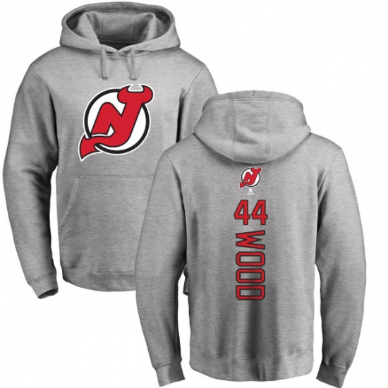 Home>NHL>New Devils Jersey>Miles Wood>NHL Adidas New Jersey Devils #44 Miles Wood Ash Backer Pullover Hoodie