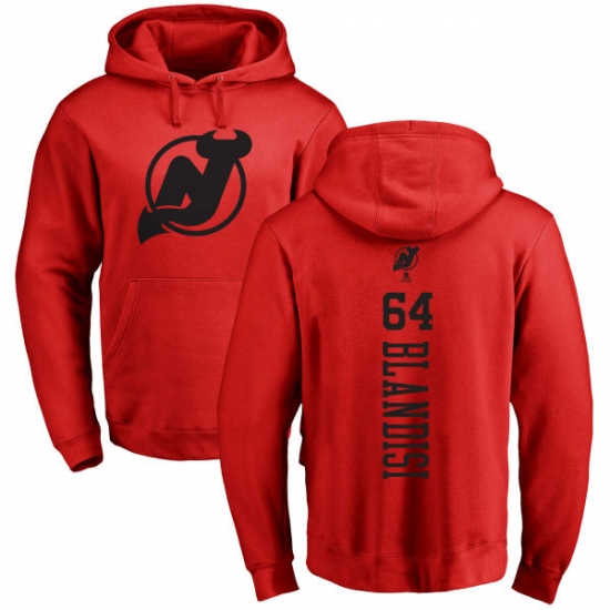 Home>NHL>New Devils Jersey>Joseph Blandisi>NHL Adidas New Jersey Devils #64 Joseph Blandisi Red One Color Backer Pullover Hoodie