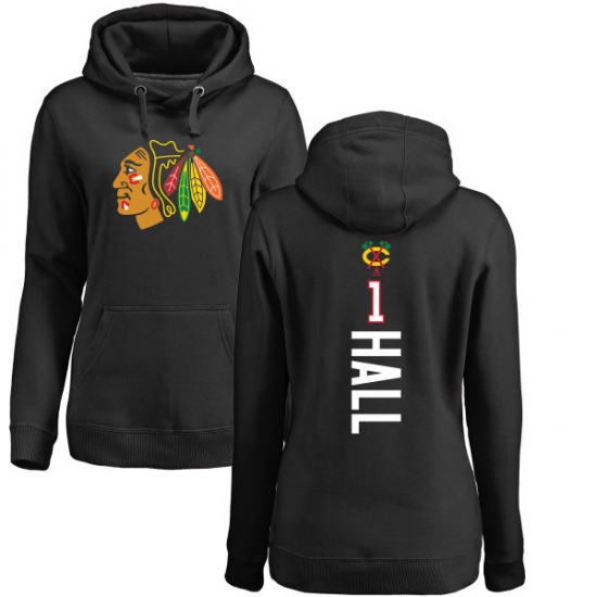 Home>NHL>Chicago Blackhawks>Glenn Hall>NHL Women's Adidas Chicago Blackhawks #1 Glenn Hall Black Backer Pullover Hoodie