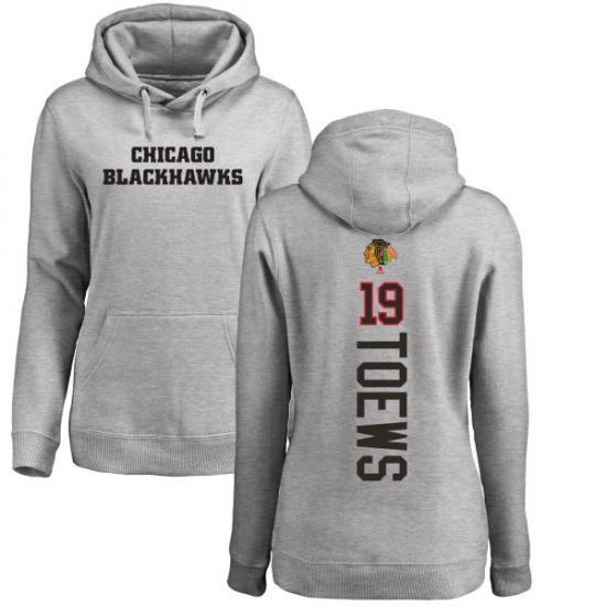 NHL Women's Adidas Chicago Blackhawks #19 Jonathan Toews Ash Backer Pullover Hoodie