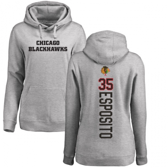 NHL Women's Adidas Chicago Blackhawks #35 Tony Esposito Ash Backer Pullover Hoodie