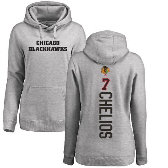 NHL Women's Adidas Chicago Blackhawks #7 Chris Chelios Ash Backer Pullover Hoodie