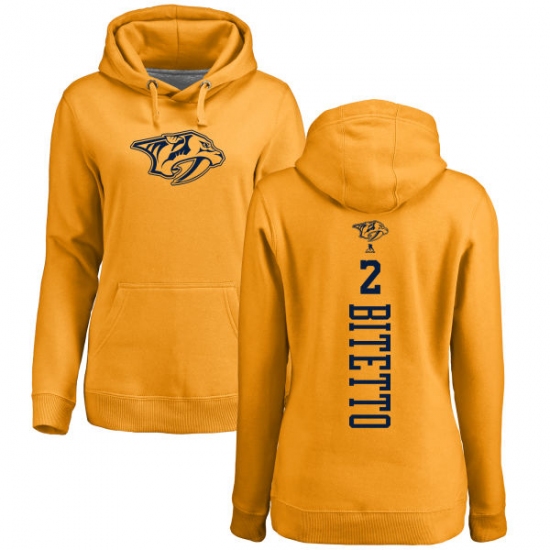 Home>NHL>Nashville Predators>Anthony Bitetto>NHL Women's Adidas Nashville Predators #2 Anthony Bitetto Gold One Color Backer Pullover Hoodie