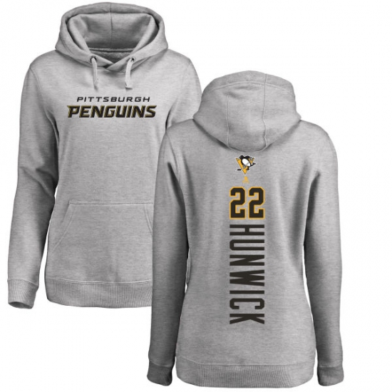 NHL Women's Adidas Pittsburgh Penguins #22 Matt Hunwick Ash Backer Pullover Hoodie