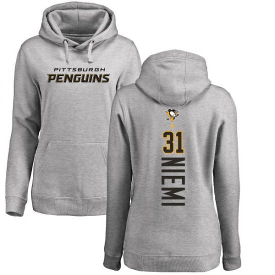 NHL Women's Adidas Pittsburgh Penguins #31 Antti Niemi Ash Backer Pullover Hoodie