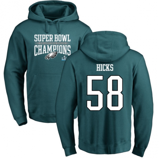 Nike Philadelphia Eagles #58 Jordan Hicks Green Super Bowl LII Champions Pullover Hoodie