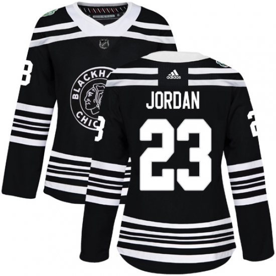 Women's Adidas Chicago Blackhawks #23 Michael Jordan Authentic Black 2019 Winter Classic NHL Jersey