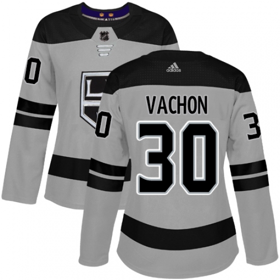 >Women's Adidas Los Angeles Kings #30 Rogie Vachon Authentic Gray Alternate NHL Jersey