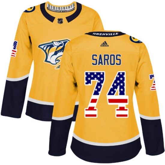 Home>NHL>Nashville Predators>Juuse Saros>Women's Adidas Nashville Predators #74 Juuse Saros Authentic Gold USA Flag Fashion NHL Jersey